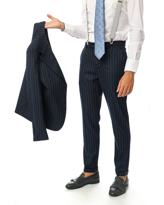 In offertaAbito monopetto blu gessato