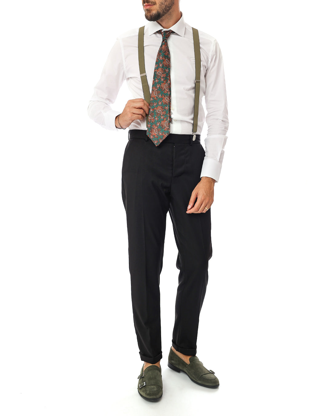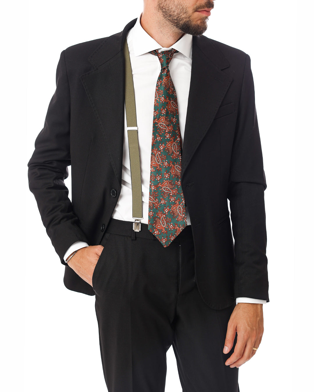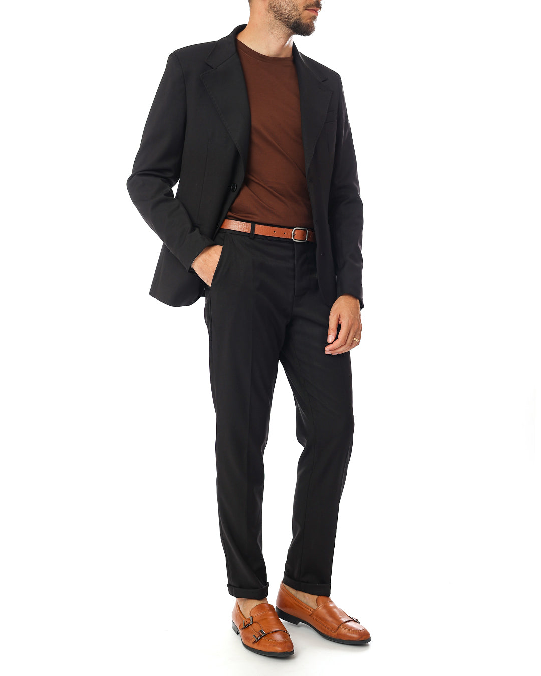 Abito monopetto con revers dentellato da 10cm slim fit. Il modello in foto indossa una 46 è alto 1.70m e pesa 65 kg