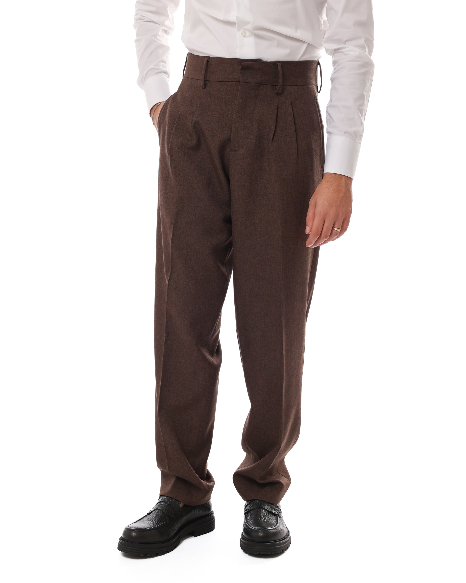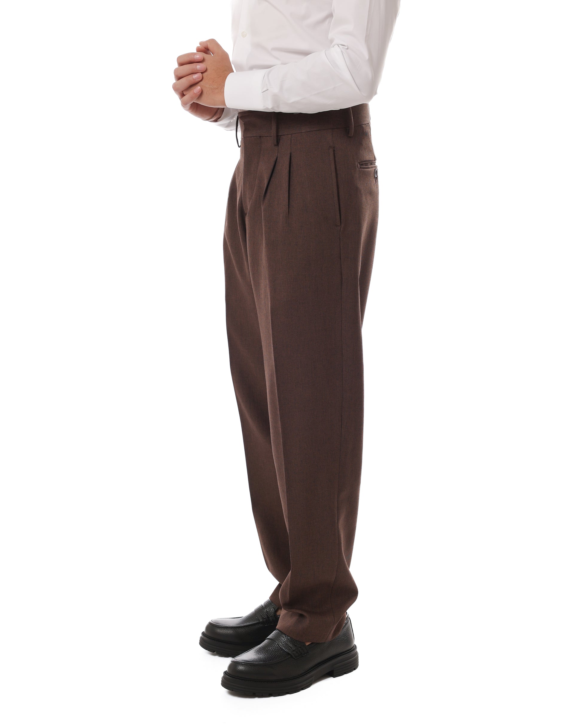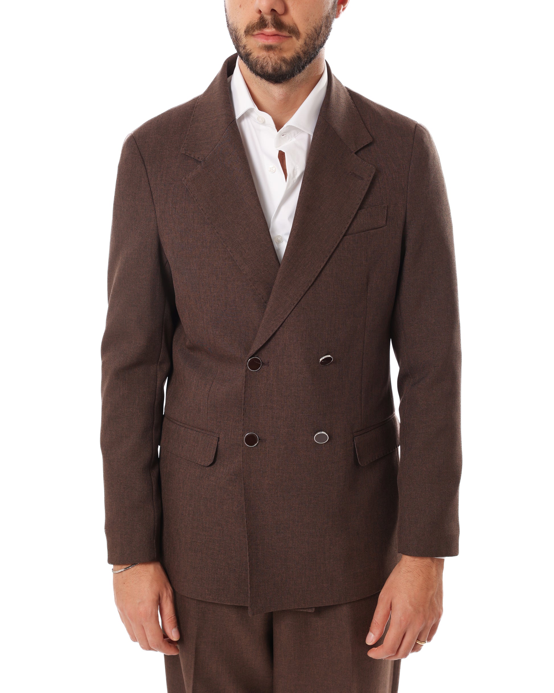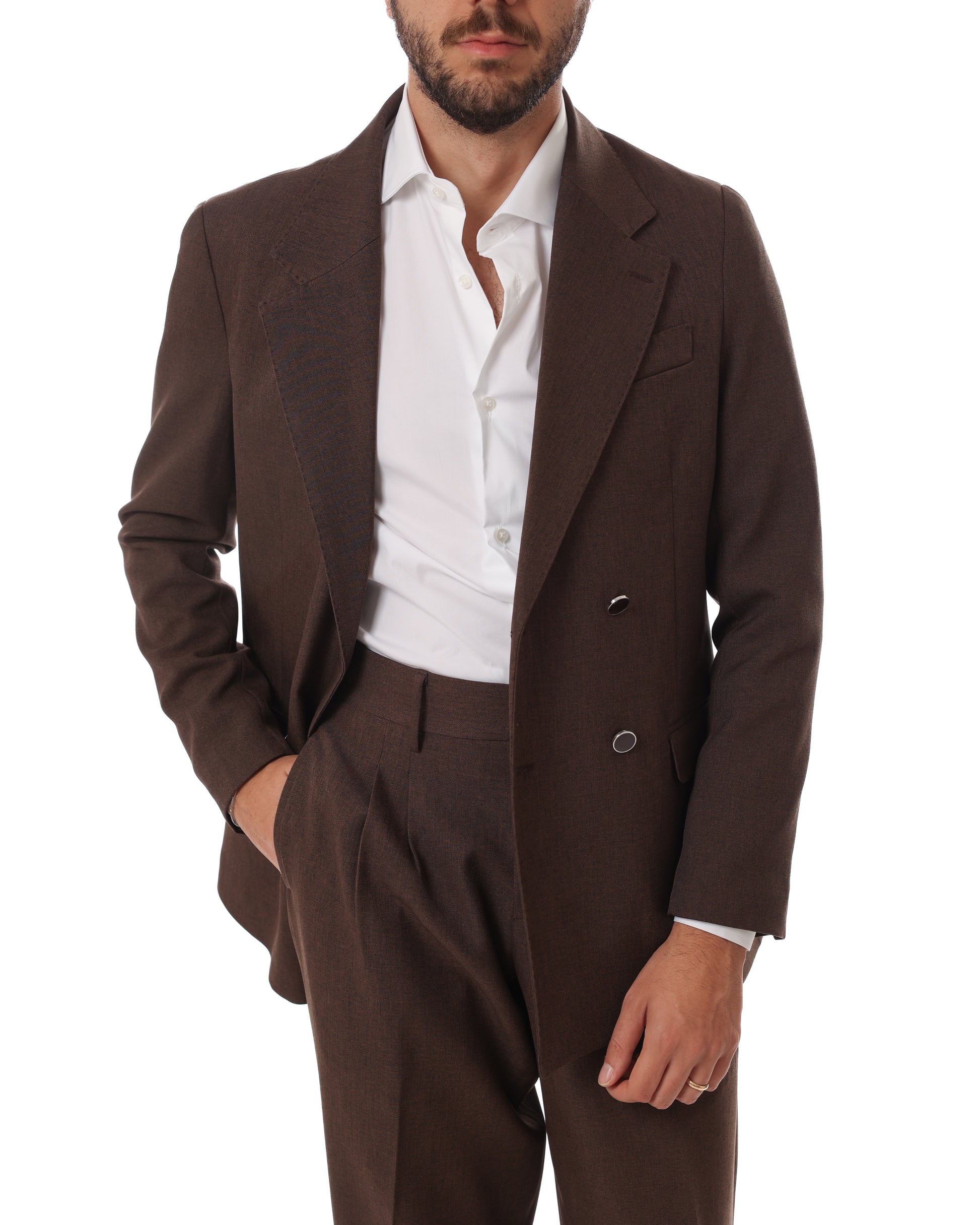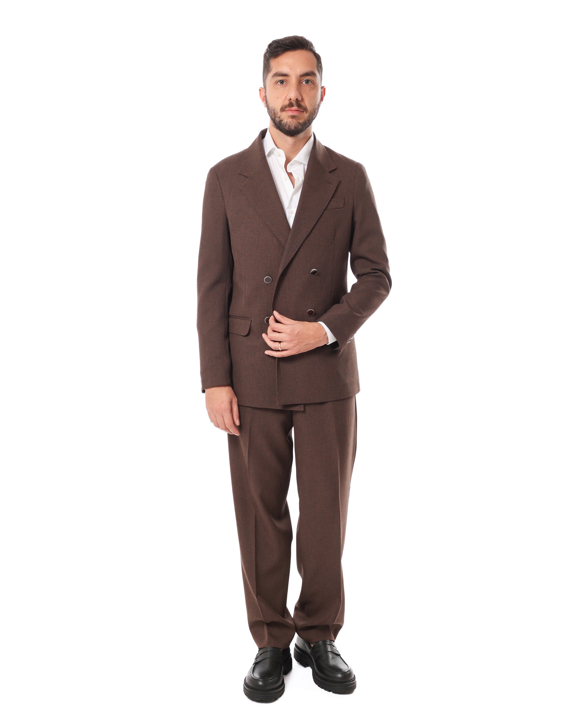 Abito doppio petto 4 bottoni over fit con revers dentellato , il pantalone presenta un modello vita alta doppia pinces con fondo largo da 21cm.