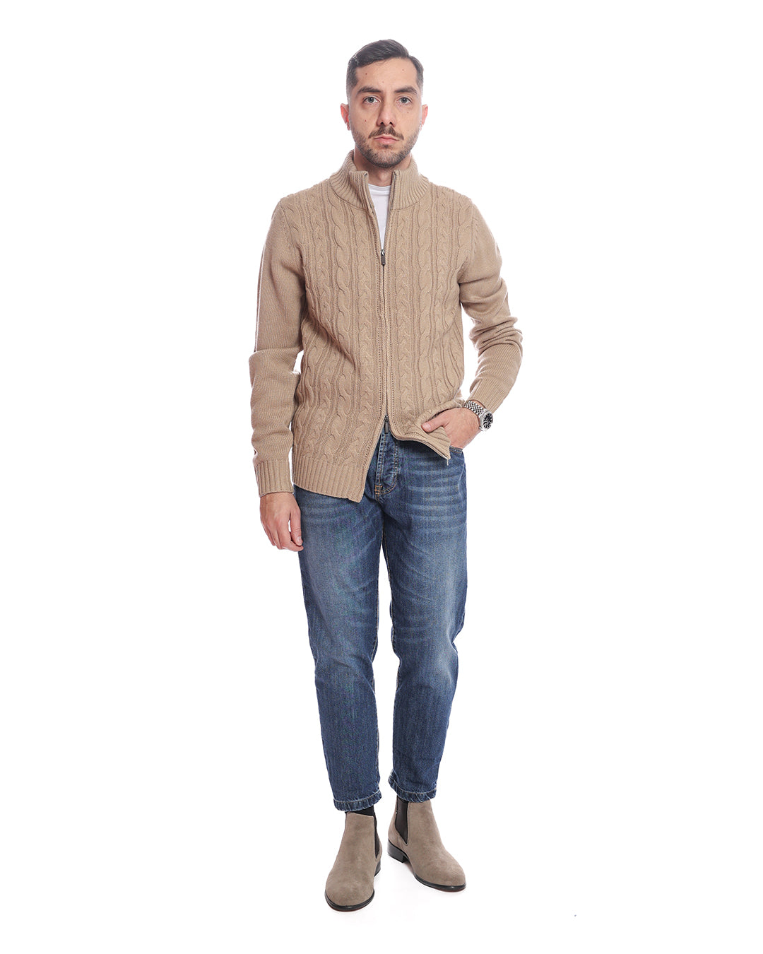 Cardigan full zip intrecciato