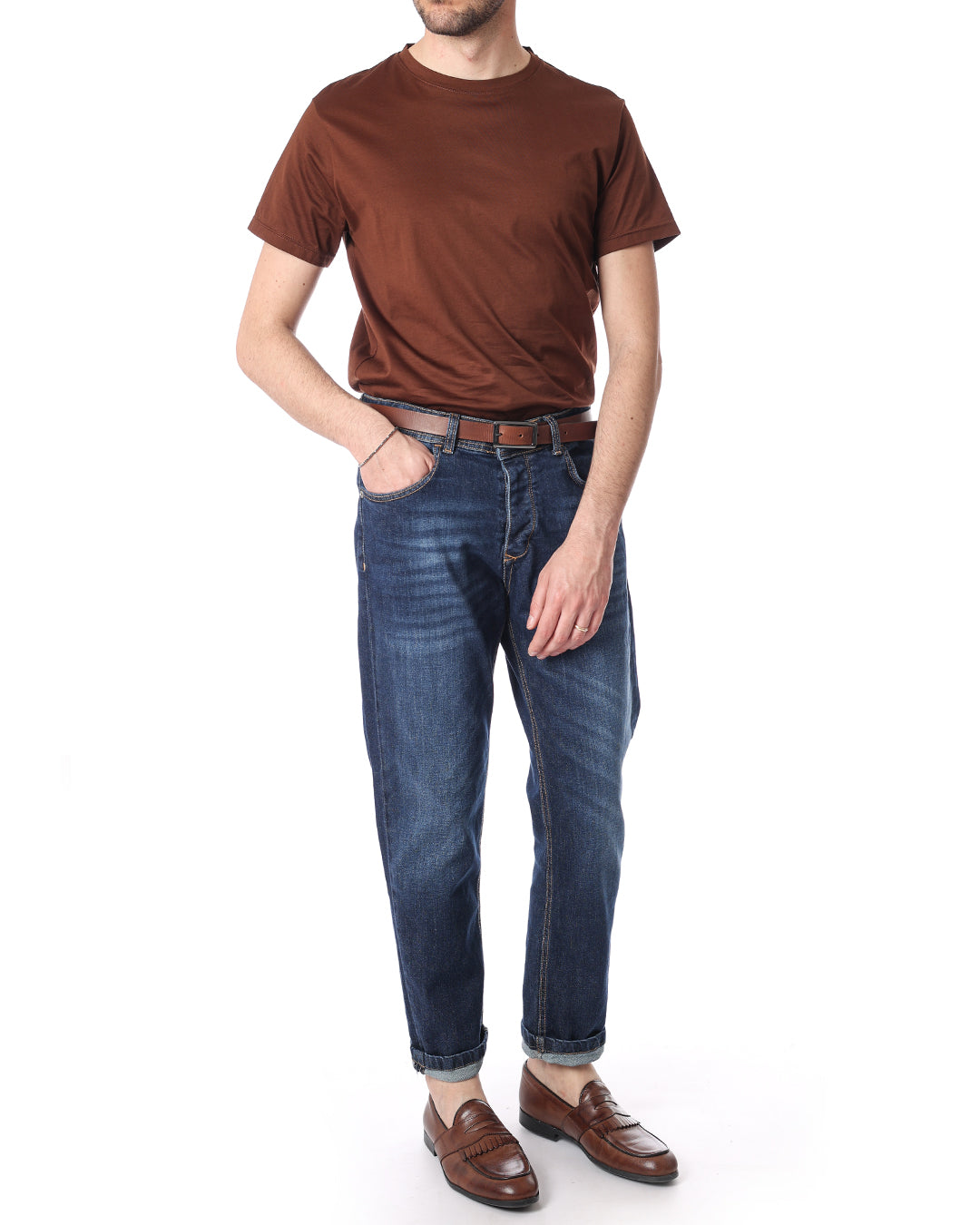 Denim tela elastica slim fit.. Il modello in foto è alto 1.70 e pesa 65kg indossa una 46
