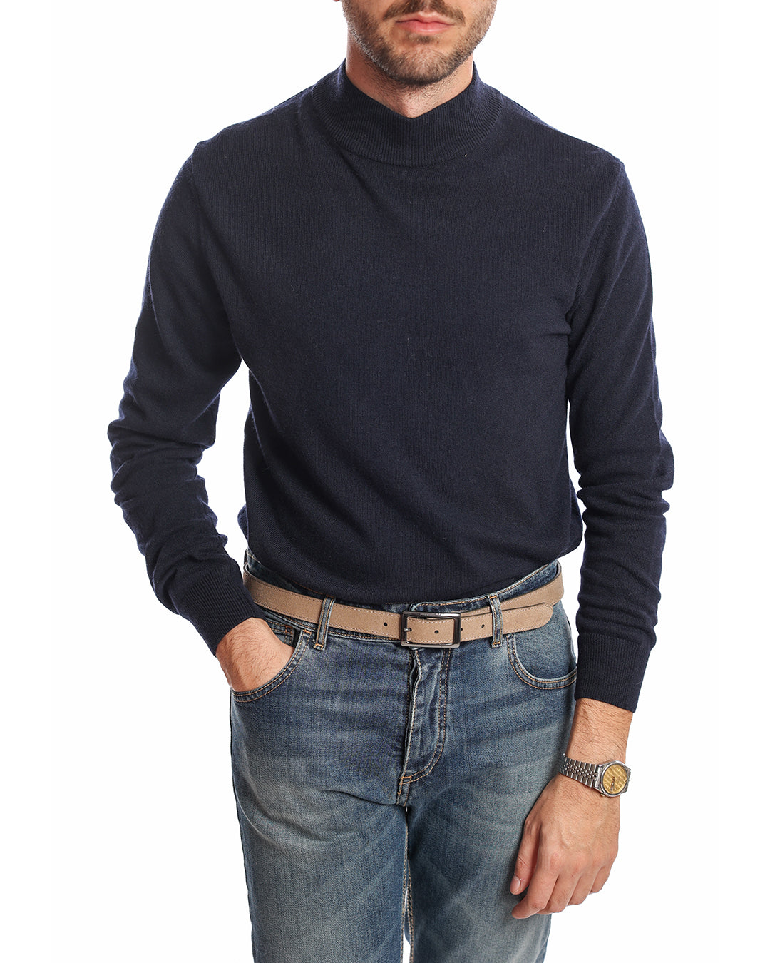 Lupetto in misto cashmere. Il modello in foto alto 1.72 pesa 65kg indossa una M