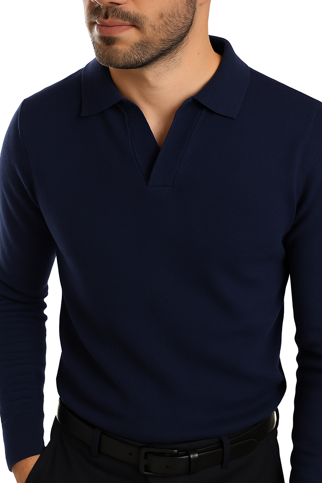 Polo derby in misto lana merinos . Il modello in foto è alto 1.73 pesa 65kg indossa una S.